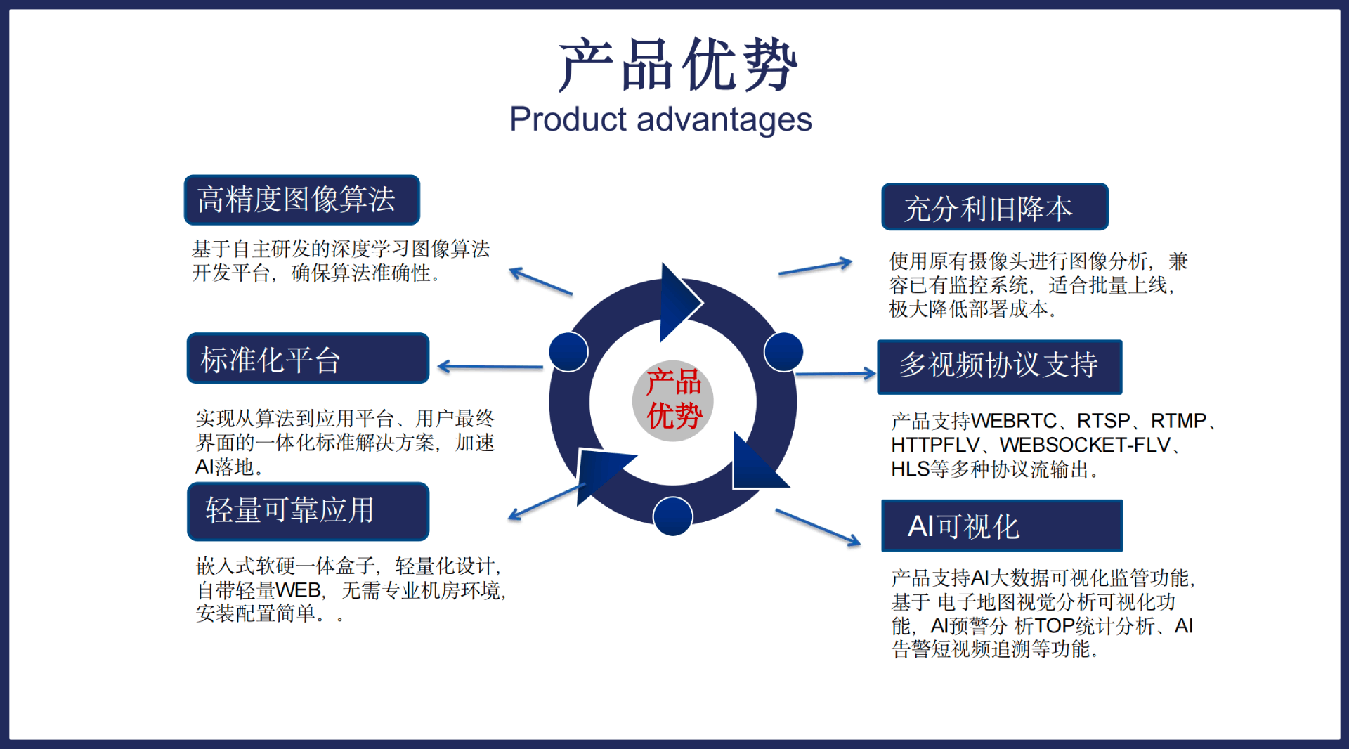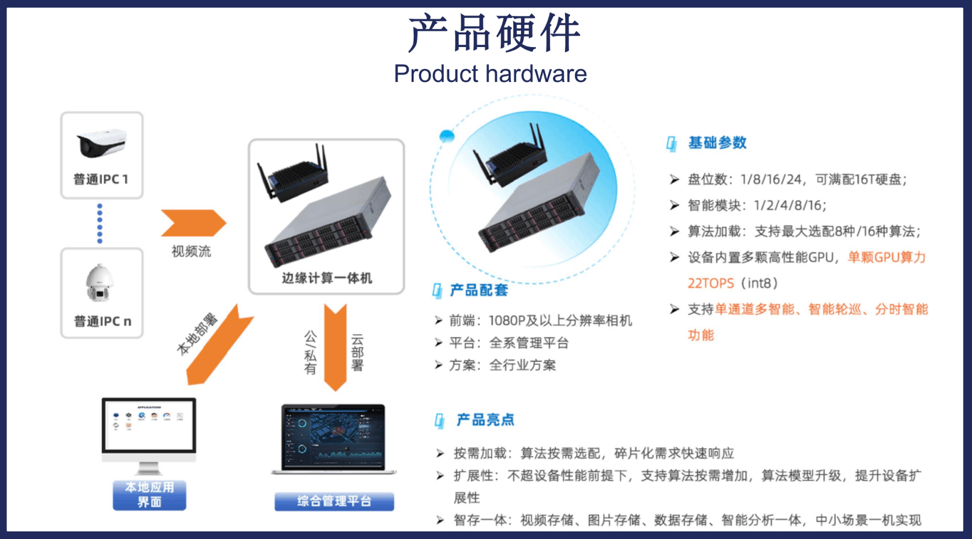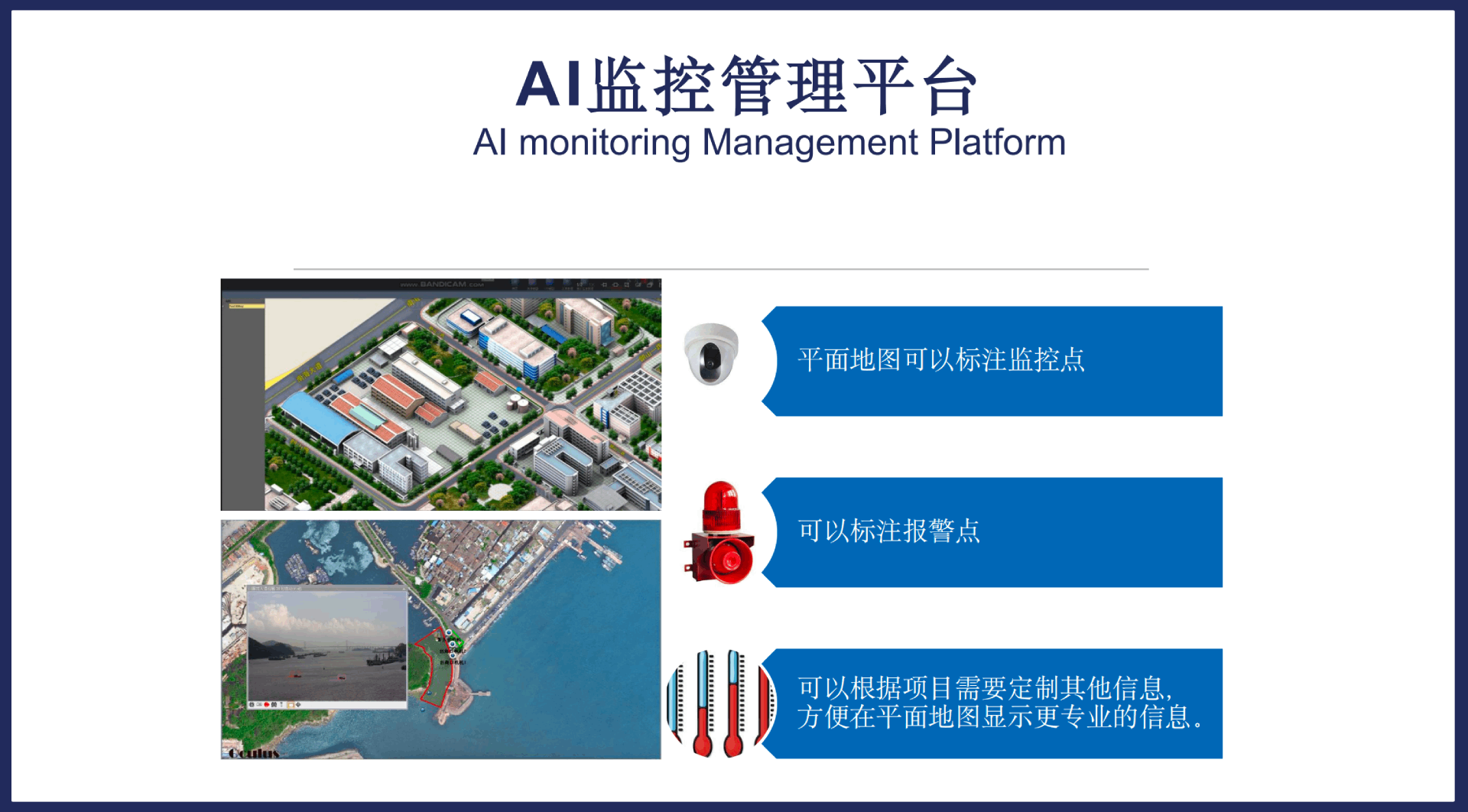 颠创科技 AI 视觉解决方案基于人工智能视觉分析技术,依靠自主研发的深度学习算法和高性能硬件产品,对前端图像数据进行实时识别分析预警,并通过AI 推理平台对预警结果进行直观展示。 该方案形成了全面的智能视频分析系统,已广泛应用于市政、工厂、医院、小区等多个行业,助力政府和企业提高管理效率,降低安全风险,实现智能化升级。